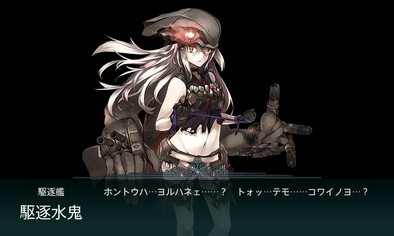 Pt子鬼群の方は小口径主砲や対空機銃、副砲を装備して対応しましょう。また、基地航空隊も派遣できるのでcマスに集中しましょう。 dマス dマスではpt子鬼群が編成された艦隊と交戦します。 第二艦隊にはpt子鬼群が編成されており輸送中は対策が困難です。 E2南ルート。 戦艦2、重巡、軽空母、駆逐2 こんな編成でゲージ削り。駆逐艦には「主砲+主砲+ソナー」を装備しておくと Cマスの潜水艦 NマスのPT子鬼群 ボス戦のPT子鬼群 などで大活躍してくれます。4周目でゲージが半分くらい削れました。コンテンツツリー MMD艦これ集積地棲姫&PT子鬼群仕様書Ver105 コンテンツツリーとは、今見ている作品を作るために利用した作品(親作品)や、